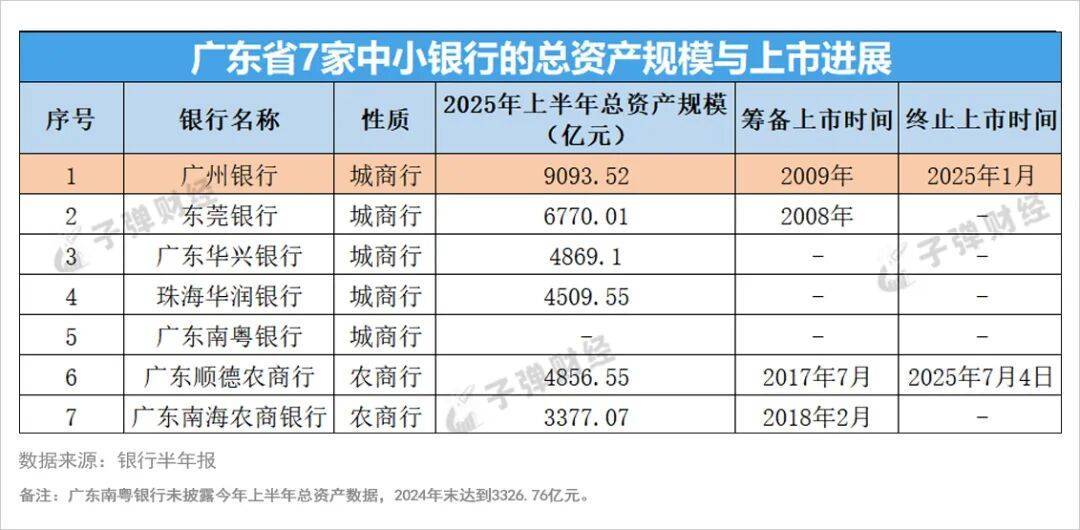 广东作为“金融强省”,目前尚未有一家上市的城商行,但广州农商行和东莞农商行却已在港交所上市。广东共有5家城商行,其中广州银行的资产规模居首位。