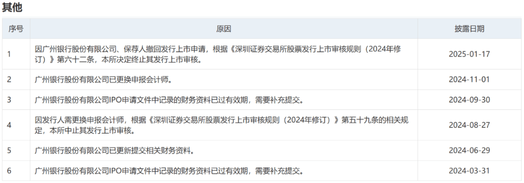 (图 / 广州银行2024年以来的上市进展变更记录(来源:深交所网站))