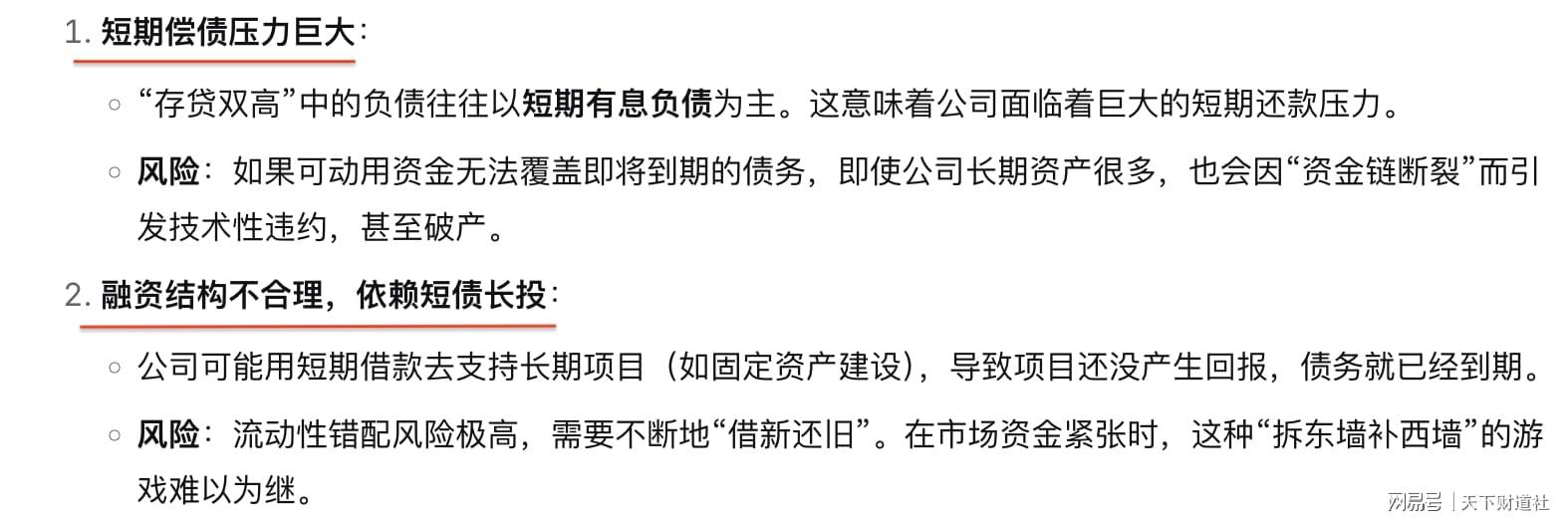 当然,可能还有其它风险,需要引起企业的重视。比如,是否增加短期偿债的压力,以及融资结构是否合理等。