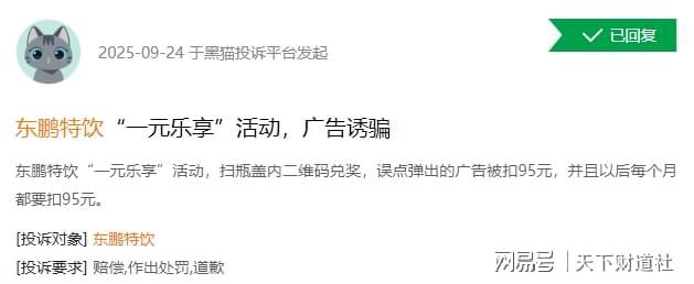虽然投入大量资金在销售上,但恰恰也是在这一环节,东鹏饮料暴露出一些问题。在黑猫投诉平台,有不少对公司宣传、销售和兑奖等环节的投诉。