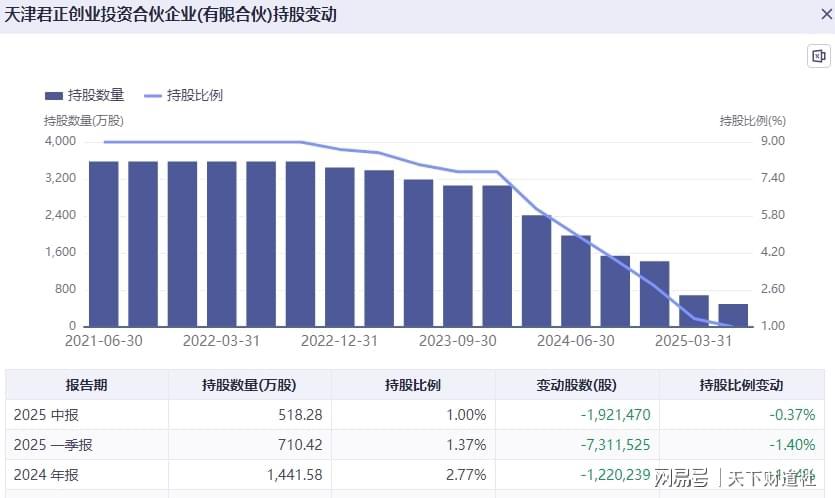 而曾经的第2大股东君正投资自2022年底起陆续减持,累计减持比例达6.2%,套现约42亿元,目前已降至第8大股东。