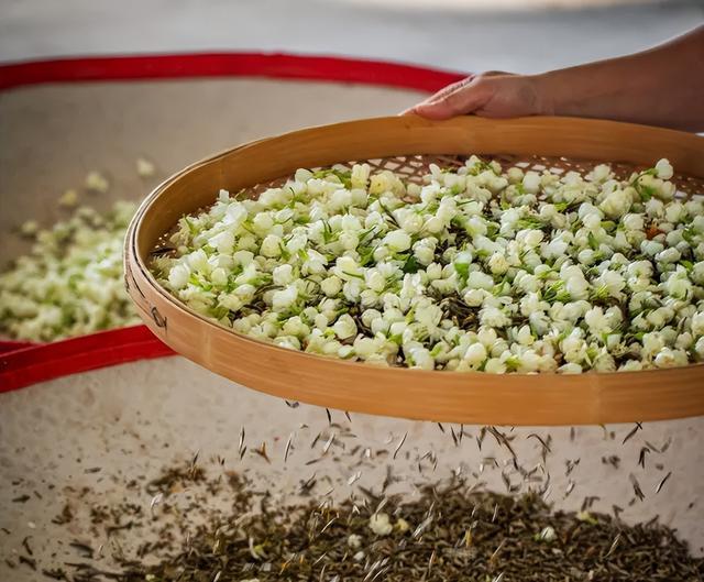 陈威威的制茶日历与自然节律紧密相连:三四月制作绿茶茶底,六月中下旬开启茉莉花茶季,十月采制桂花茶,次年一月以腊梅花茶收尾。每个季节都有专属的“花时钟”,其中尤以茉莉花茶制作最为繁复。