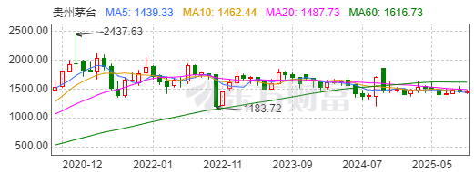 其中,茅台自从2021年初股价突破至2400元/股历史高位之后,不知不觉中已经弱势震荡了4年多,期间股价跌去超千元,最新价格仅1441元/股,自高位跌幅超过40%。