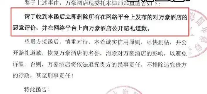 将近38万的婚宴,却吃到这样的菜品,新郎当时就怒了。既然好好沟通解决不了问题,他干脆选择曝光问题。三条视频一发,消息很快就火了。然而,这个时候酒店却开始主动找到新郎官,不是谈和解,而是直接发律师函,要求新郎于收到本函后立即删除所有在网络平台上发布的恶意评价,并在网络平台上向酒店公开赔礼道歉。
