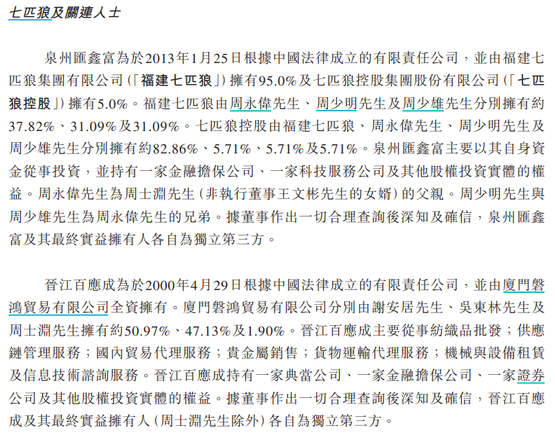 IPO前夕,七匹狼“周氏家族”通过两笔股权转让入股八马茶业。聆讯后招股书显示,2024年9月至11月,王文彬之妻陈雅静以30.3元/股的价格向昇望基金(实控人为新希望董事长刘永好)转让228万股,向泉州汇鑫富公司(实控人为七匹狼集团周永伟)转让198万股;同年12月,王文彬之弟王文礼向晋江百应成贸易转让148万股。三笔交易共套现1.74亿元,显著提升了资本市场对公司价值的认可。