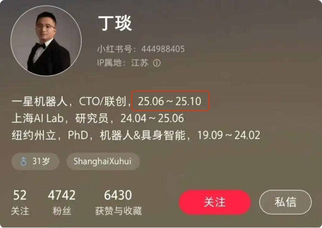 一星机器人解散的背后,是吉利集团在具身智能这一高投入、长周期赛道上的战略调整。公司虽拥有上海AI Lab研究员丁琰、复旦大学姜育刚教授团队等顶尖人才,且背靠吉利这棵大树,但解散决定仍超出市场预料。CTO丁琰在社交平台上的履历更新(2025年6月至10月)也印证了这一消息。