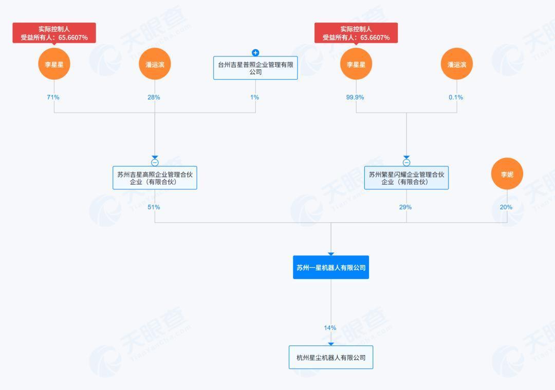 从股权结构看,一星机器人实控人李星星持股65.66%,拥有51%的表决权,董事长潘运滨同时担任吉利半导体公司CEO,吉利系人员在公司中占据关键地位。然而,吉利当前更看重的是另一明星公司——千里科技。