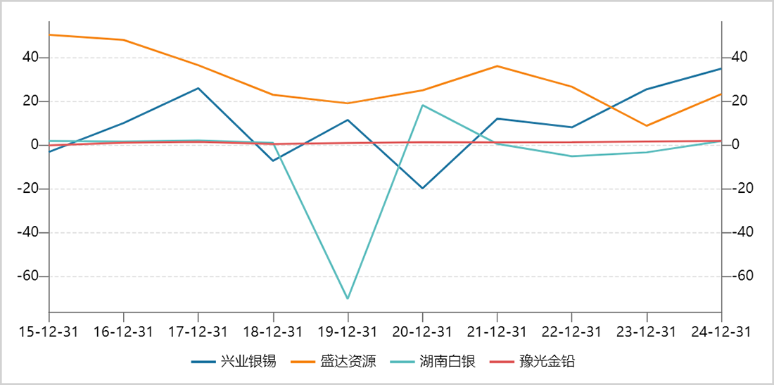 此外,盛达资源的白银产能规模也位居国内前列。2024年,公司白银产量为139吨,后期目标将提升至200吨以上。白银产业链中游主要是冶炼和深加工环节,盈利水平受银价上涨的带动远不如矿产端。2025年上半年,兴业银锡、盛达资源、湖南白银、豫光金铅净利率分别为31.7%、11.4%、1.4%和2.2%,中游赚取的是加工费,属于低毛利制造业。
