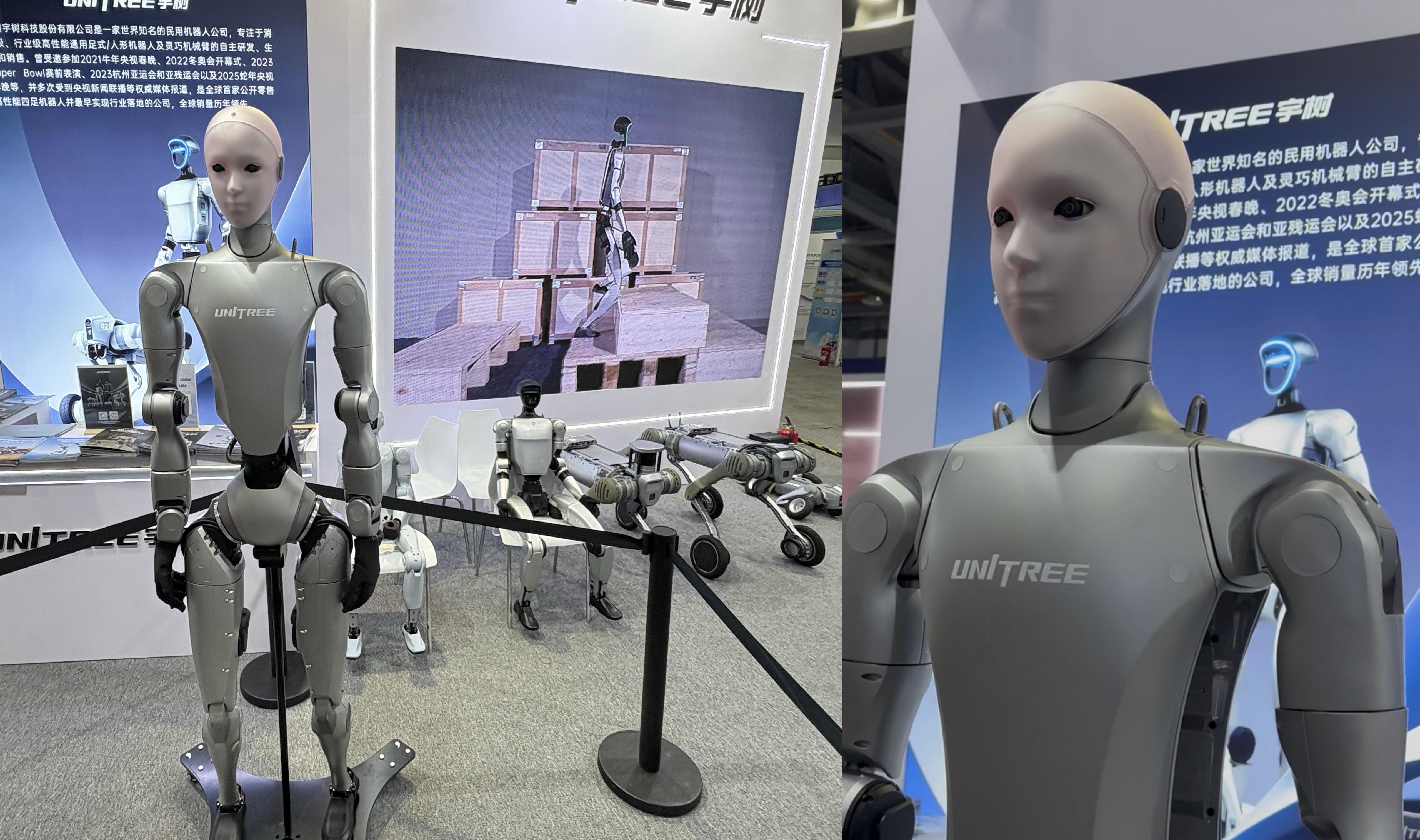 在IROS 2025展会上,宇树全尺寸人形机器人H2以“披人皮”的猎奇造型引发关注。其定制模具头部与裸露摄像头的双眼设计,虽被租赁商评价为“不够逼真”,却以10000元/天的预估租赁价吸引商业场景订单。这款产品与宇树现有矩阵——1.8米H1、1.3米G1、轻量化R1及四足机器狗Go系列,共同构成覆盖消费级到工业级的完整生态,成为魔法原子等企业构建“小人形+四足”产品线的参考范本。