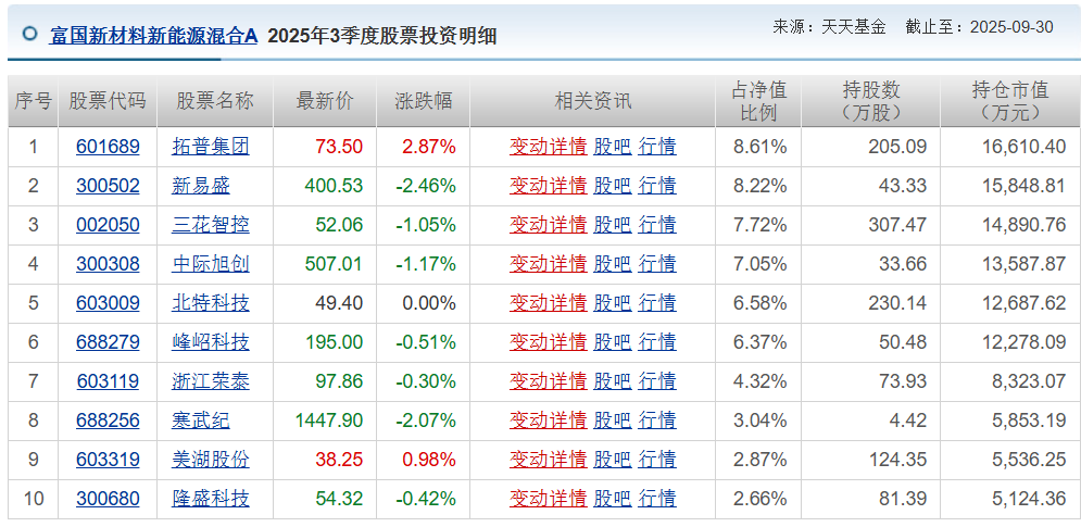 值得注意的是,该基金持股集中度较高但换手率较低。以富国新材料新能源混合A为例,最新季报显示股票仓位达91.98%,前十大重仓股占比近六成,体现出基金经理对投资逻辑的坚定信心。