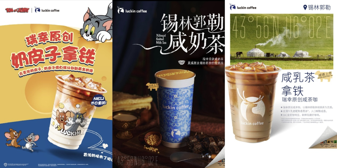 今年秋天,瑞幸早早地前往内蒙古采风。两个月内一口气推出了三款锡林郭勒原产地新品——9月创造性地研制出奶皮子拿铁,10月底又上新了锡林郭勒咸奶茶和咸乳茶拿铁。