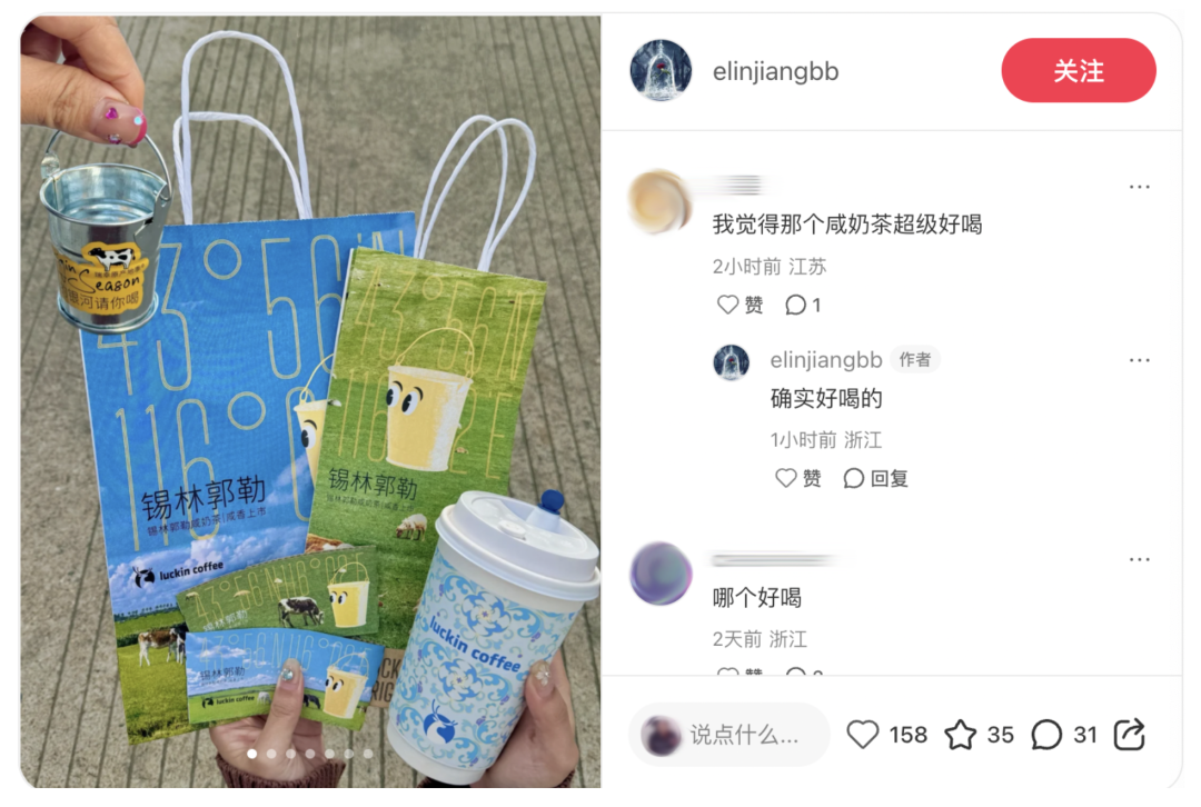为什么非得盯着产地跑?原产地三个字放在如今这个内卷又升级的市场环境里,代表的意义可太多了:新鲜、高品质、原生态。做咖啡的瑞幸也在绞尽脑汁想如何让打工人吃好喝好。比如这次锡林郭勒系列,看中的正是内蒙古锡林郭勒的“世界黄金奶源带”地位。北纬40°、118万平方公里的草原、民族传统乳制品的核心产区,每个关键词都在为锡林郭勒咸奶茶的原汁原味背书。