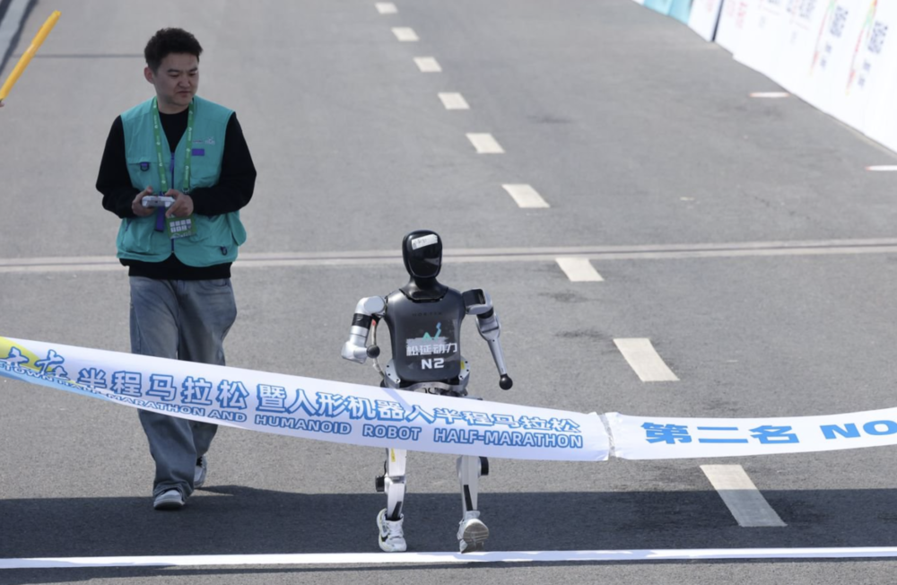松延动力N2人形机器人跑过终点 照片由松延动力提供