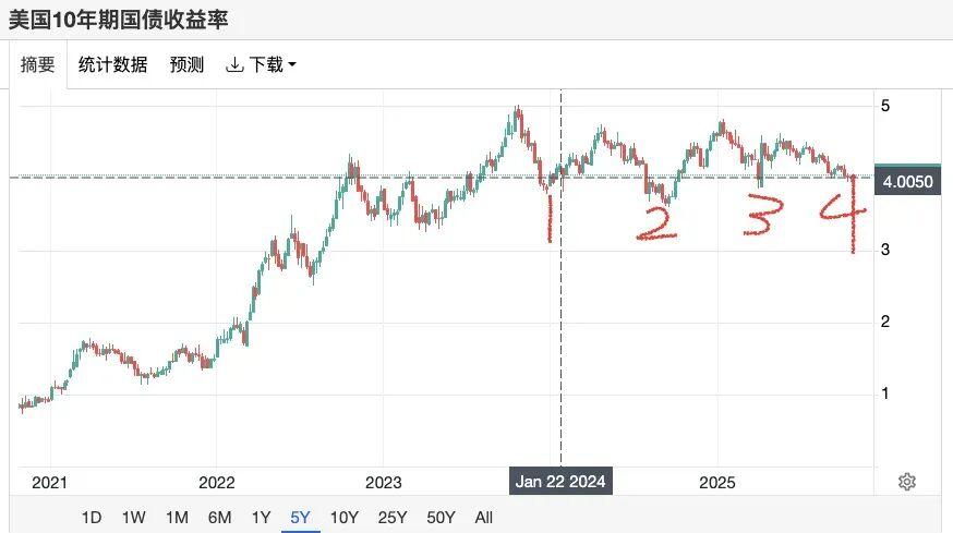 近期市场焦点多集中于国际谈判动态,却鲜少有人注意到美联储年内第二次降息已正式落地。更值得关注的是,对利率高度敏感的10年期美债收益率于上周悄然跌破4%关键心理关口,这一技术性突破或预示着美债市场即将迎来新一轮配置机遇。