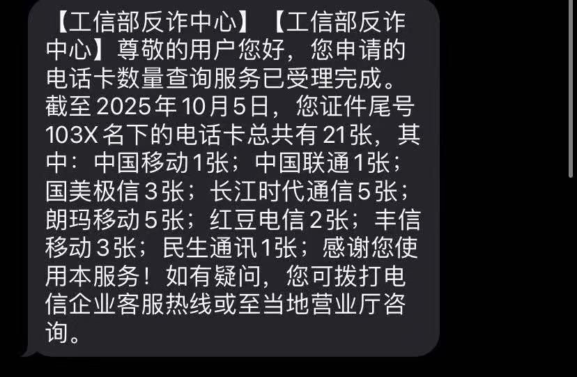 相较于小李的一无所获,市民小张虽然拿到了报酬,却付出了更惨痛的代价。今年9月,他前往营业厅办理新电话卡时,被告知名下已有21张电话卡,其中13张是"170"开头的虚拟运营商号码。通过工信部小程序查询,这些卡片注册时间集中在他去年参加的两次充场兼职期间。