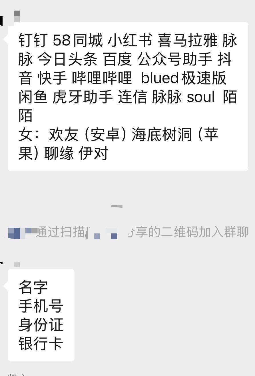 "先下载这些App,然后把姓名、手机号、身份证号、银行卡号发到群里。"组长的话让众人哗然。面对质疑,组长解释:"有些应用需要提前报备信息才能申办,这样能节省时间。"当记者提出私发信息时,对方不耐烦地表示:"信息绝对安全,不会扩散。"记者尝试添加其微信,却收到"该账号违反平台规定"的提示。