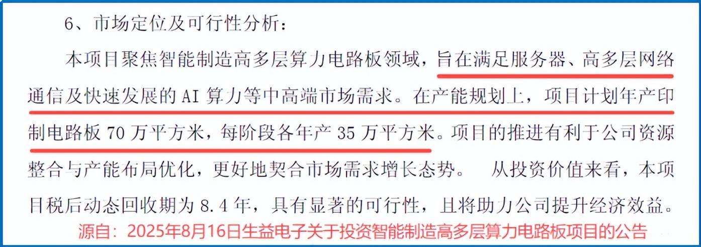 为应对持续爆发的订单需求,生益电子于2025年8月宣布投资19亿元建设吉安二期智能制造项目,规划年产70万㎡高多层算力电路板。项目分两阶段实施:首期35万㎡产能将于2026年试产,二期35万㎡产能预计2027年落地。该布局将显著提升公司在AI服务器、高速通讯等中高端领域的供应能力。