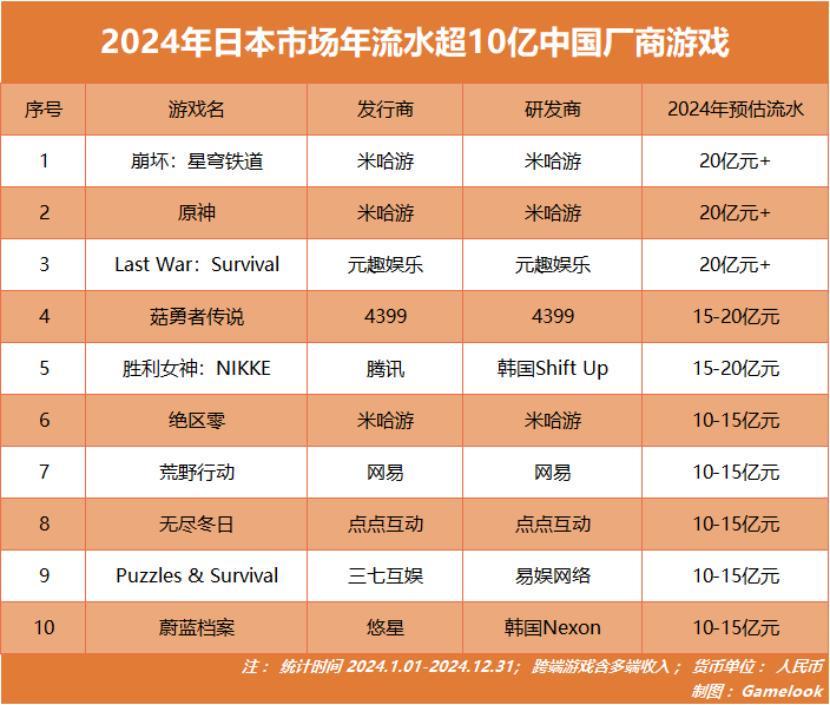 但在米哈游之外,去年日本市场年流水超10亿的中国游戏之列,还出现了4399开发的《菇勇者传说》这样的休闲游戏,带来了一些二次元之外的市场变化。