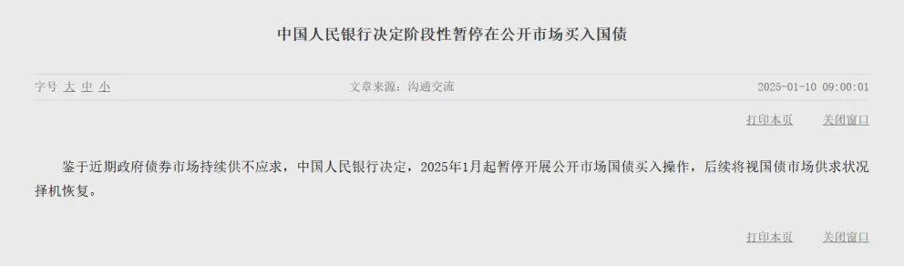 今年年初,市场面临严重资产荒,银行、保险、证券等金融机构抢跑货币宽松预期,纷纷涌入国债市场,推升国债价格持续上涨。债券市场利率快速下行,汇率市场承压贬值,股票市场需维护企稳态势,央行因此暂停公开市场国债买卖。