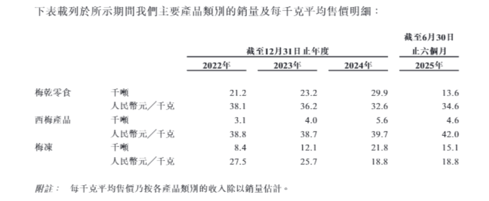 收入增长一定程度上得益于溜溜果园过去几年间‘以价换量’的打法。2022年-2024年,公司两大主要产品的售价出现明显下降,梅干零食由38.1元/千克降至32.6元/千克,梅冻则由27.5元/千克降至18.8元/千克。