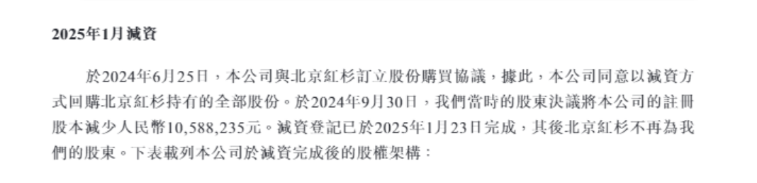 尽管溜溜果园过去几年业绩表现良好,依旧有投资者选择清仓离场。2024年6月,溜溜果园与A轮投资者北京红杉信远股权投资中心(有限合伙)(以下简称‘北京红杉’)签订股份购买协议,回购其手中持有的全部股份。