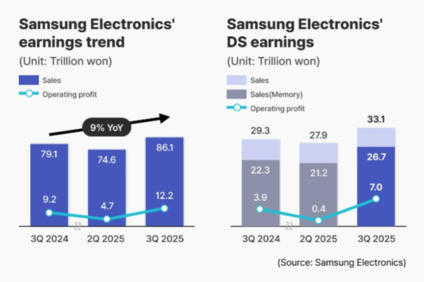 这一业绩提振了三星半导体业务部门——器件解决方案(DS)的整体利润。该部门实现营收33.1万亿韩元,营业利润7万亿韩元,分别同比增长13%和3%。三星表示,强劲的需求推高了存储器价格,同时一次性库存调整减少,是业绩增长的主要驱动因素。三星预计,人工智能的快速发展将持续推动对其高价值内存和先进逻辑芯片的需求。