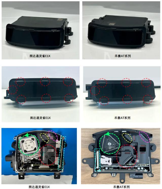 据接近禾赛科技的知情人士透露,图达通灵雀E1X在产品外观、接口设计、内部扫描架构及光路设计等关键技术维度上,与禾赛2021年推出的ATX产品存在显著相似性。从《华夏时报》记者获取的拆机图可见,灵雀E1X不仅外形与接口布局与ATX高度一致,其内部扫描架构与光路设计也基本沿用了AT系列的技术方案。