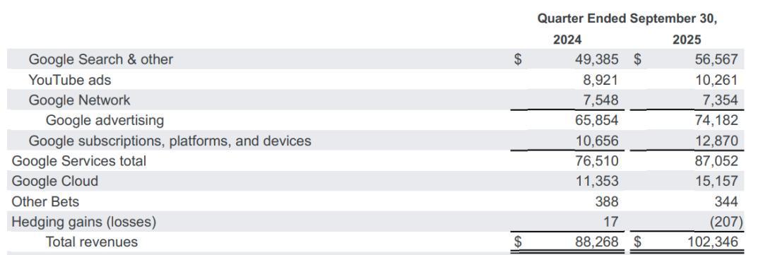 当市场普遍预言AI将颠覆传统搜索引擎时,谷歌用最新财报给出了截然不同的答案。2025年第三季度财报显示,这家科技巨头不仅未被AI浪潮冲垮,反而凭借AI技术实现收入与利润双突破:总收入达1023.5亿美元,首次突破千亿美元大关,同比增长16%;净利润350亿美元,同比激增33%。
