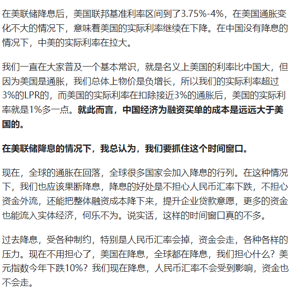 马光远指出,今年以来国际资本对中国资产的重新估值表明,中国资产价格仍处于价值洼地,这既反映了市场对中国经济长期潜力的认可,也凸显了当前利率环境对资本流动的制约。他强调,无论美联储12月是否继续降息,中国都应基于自身经济基本面作出独立判断。通过果断降息推动实际利率下降,不仅能降低企业融资成本、激发市场活力,更能为经济结构转型提供有力支撑。在当前全球经济不确定性增强的背景下,这一政策调整对维护中国经济稳定发展具有战略意义,时机选择已不容再等。