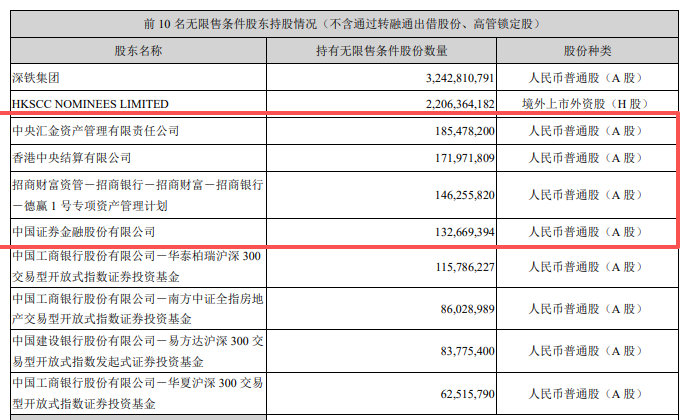 截至报告期末(三季度末),中央汇金仍持有万科A约1.85亿股,持股数量一直保持不变。