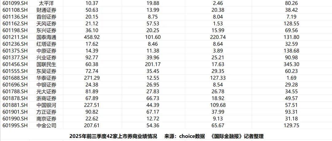 从细分业务看,经纪业务成为普遍增长点。42家上市券商经纪业务净收入全部实现同比正增长,其中38家增幅超50%。国联民生经纪业务净收入从3.98亿元增至15.65亿元(同比增长293%),国泰海通从44.54亿元增至108.14亿元(同比增长143%),国信证券经纪业务净收入同比增长109%至63.62亿元。