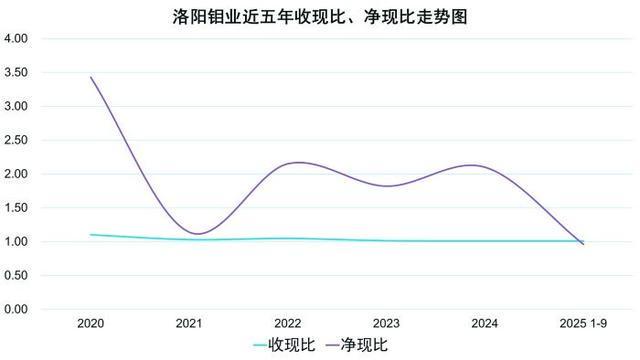 然而,与亮眼的利润表现形成鲜明对比的是,现金流效率的边际挑战。根据三季度财报数据,公司收现比依旧保持在1.008,但净现比则从去年同期的1.81跌至0.96,为近五年首次跌破1。这意味着尽管账面利润亮眼,但实际经营性现金流支持力度明显弱化。