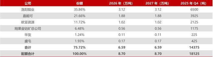 根据最新披露的数据,洛阳钼业在2025年第四季度的钴出口配额占比为35.86%,尽管仍能保持一定的出口量,但长期来看,出口配额管理制度将显著影响公司整体出货节奏,可能对收入和现金流产生影响。