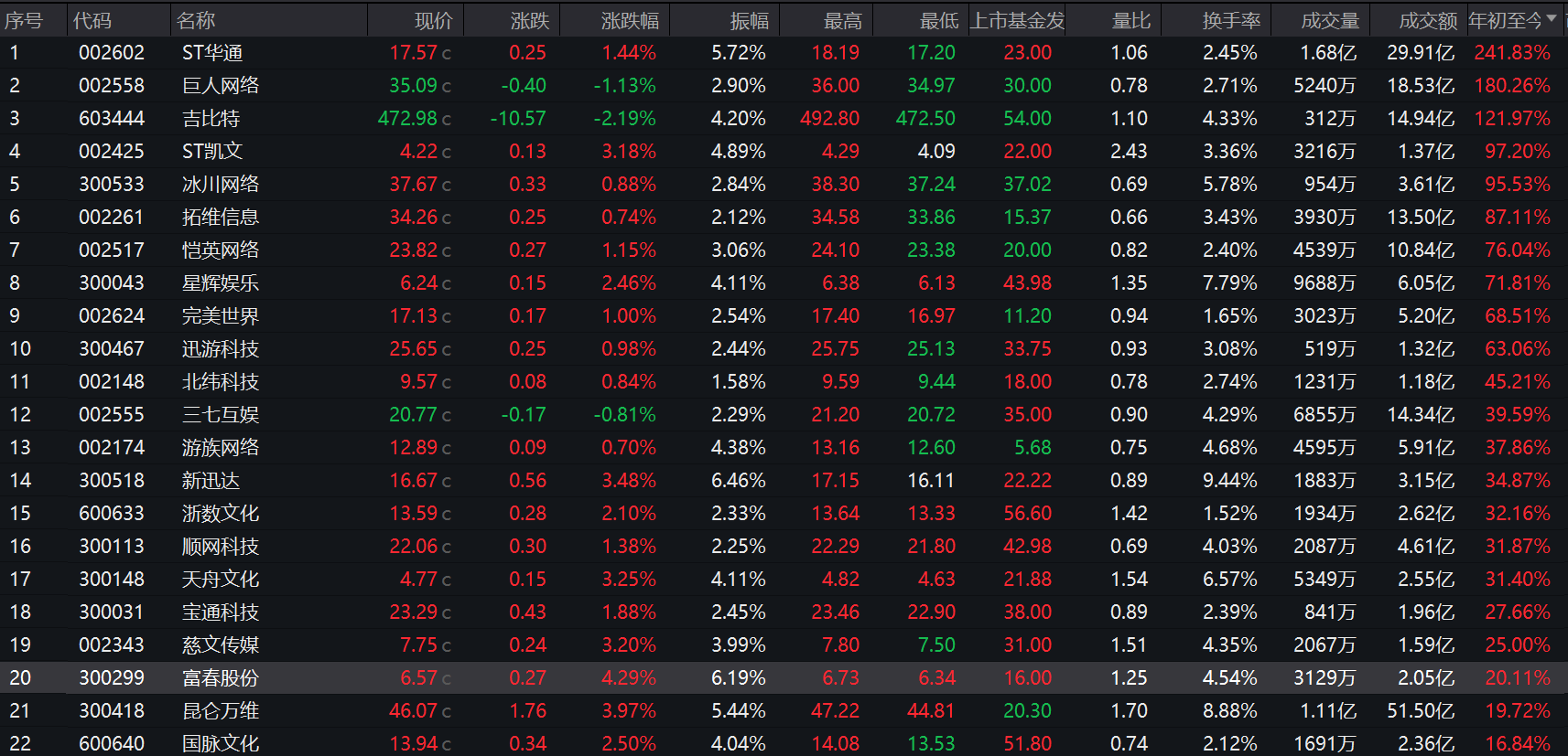 与此同时,时代财经注意到,随着游戏行业的普遍回暖,万得网络游戏概念整体也稳步上涨,其中不少公司股价大幅上涨。