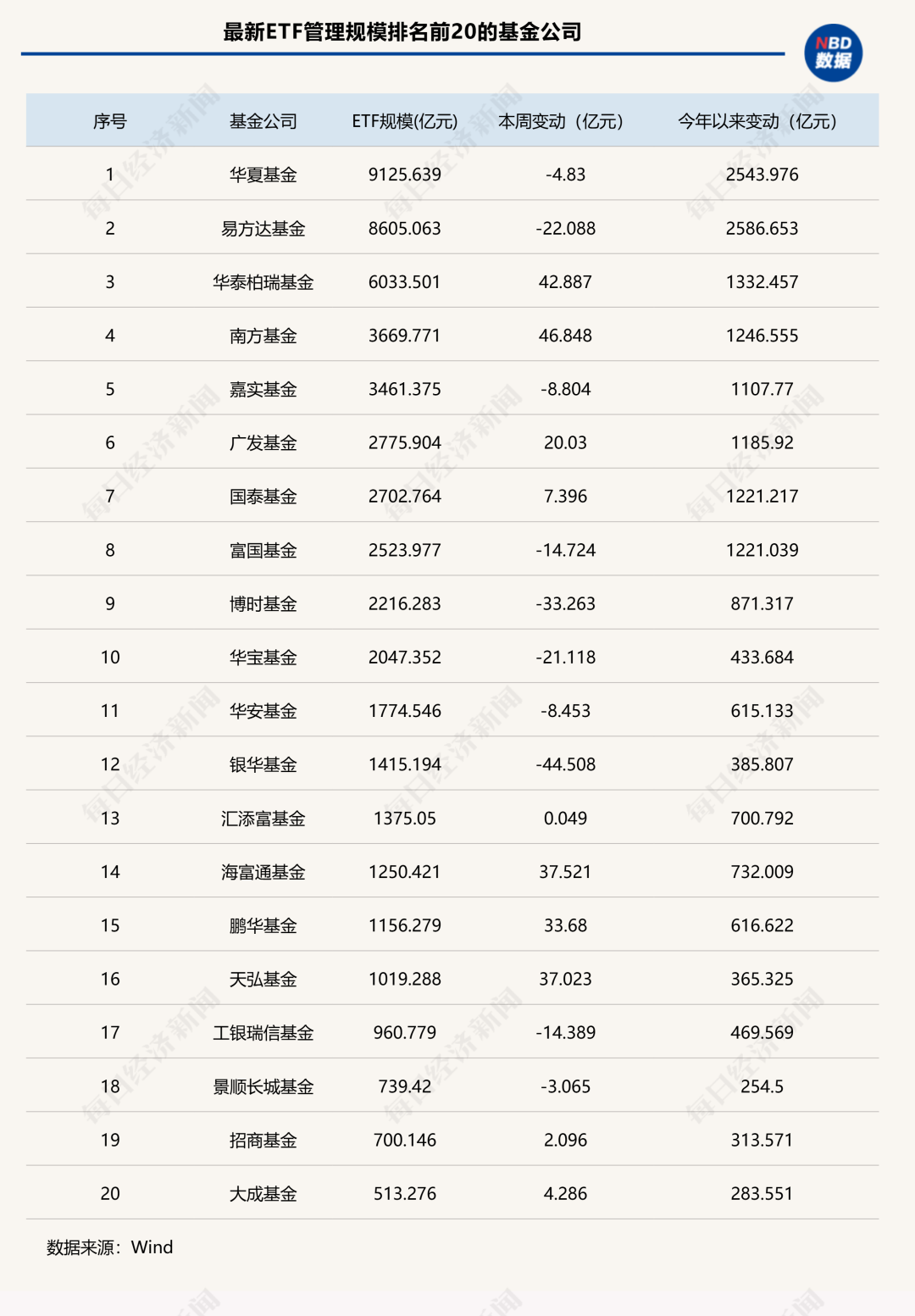 另一方面,银华基金和博时基金ETF规模本周分别缩水44.51亿元和33.26亿元。