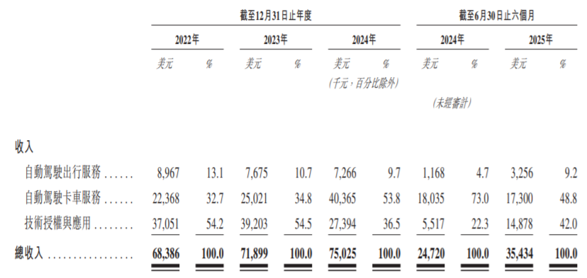 两家企业的核心竞争差异在招股书中显露无遗。文远知行以"全球唯一六国自动驾驶牌照"为卖点,其Robotaxi业务贡献31.1%营收,同时布局环卫车、小巴等多元场景。而小马智行则押注Robotruck赛道,该业务占比达48.8%,技术授权服务贡献42%收入。
