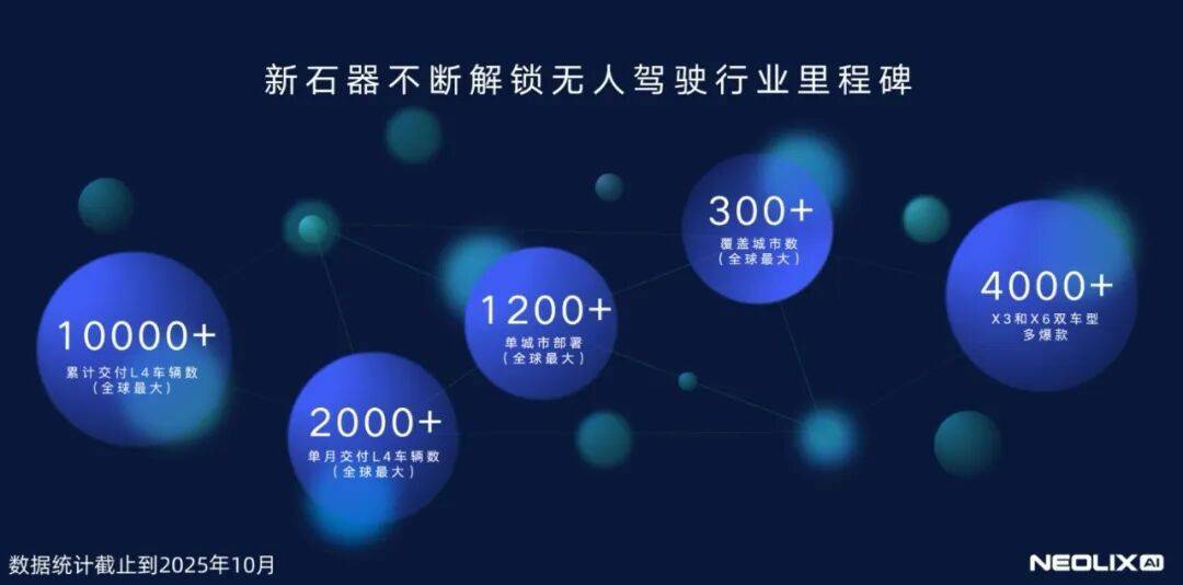 今年,新石器从计划性物流延伸至即时性物流,成功切入城市配送市场,成为全球首个实现万台规模L4级无人车队交付的公司,商业化步伐进一步加快。1万台运营规模被视作无人车行业爆发的临界点,达到这一规模后,才能形成技术降本、场景验证、规模扩张的正向循环。新石器的这一突破,不仅打破了行业规模化瓶颈,更验证了中国方案的可行性。