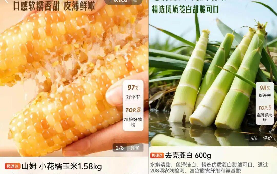 不少媒体认为此次山姆产品图的改版少不了AI的功劳,最典型的案例是黏到不分彼此的玉米和挂着“茭白”名的笋和玉米杂交物。