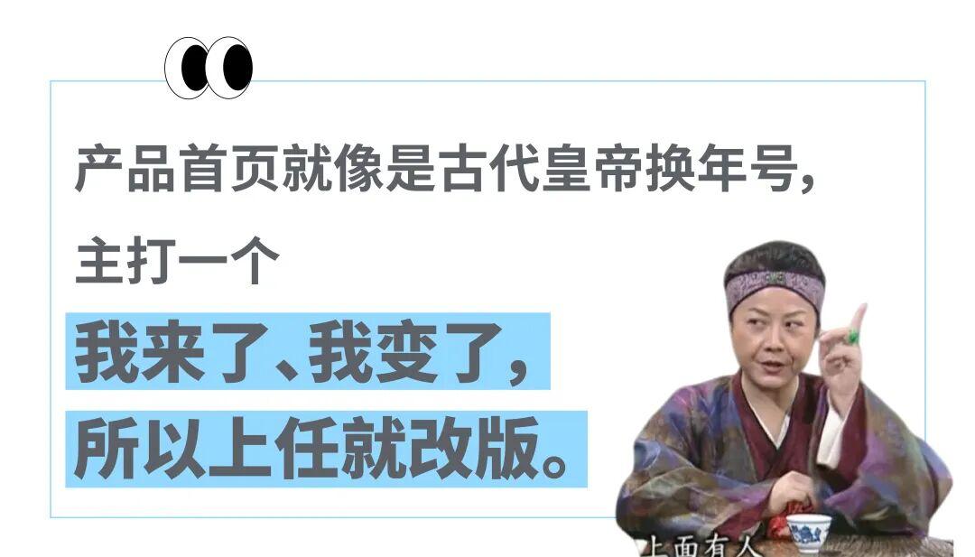 产品首页就像是古代皇帝换年号,主打一个我来了、我变了,所以上任就改版。“产品首页往往是公司/部门流量最大的地方,改成啥样儿,所有人都能看到”,张洪指出,“新领导上任都是带着任务来的,改版首页方便汇报工作,也相对好做可量化数据的,比如一些关键指标比如转化率、用户停留时间等,都可以用运营方式搞上去。”