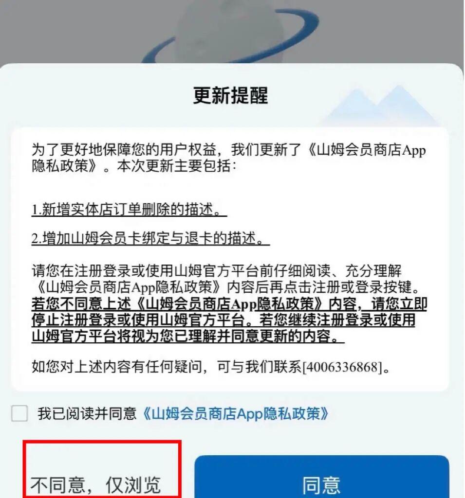 前车之鉴还历历在目,所以这一次会员犹如惊弓之鸟。最近还有会员发现山姆会员App更新了更加强势的“新会员”条款,对绑卡和退卡的要求更高,如果你不同意新条款,就无法使用已经付费的会员服务。