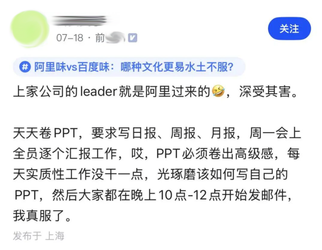作为一个早期就开始发展企业文化的互联网大厂,阿里这些年创造了许多被吐糟的职场工作模式。