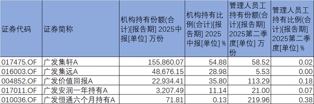 稳健的业绩表现赢得了机构与员工的双重认可。截至上半年,广发集轩的机构持有份额达15.59亿份,占比54.88%;同时,该基金还被广发基金员工持有58.52万份。