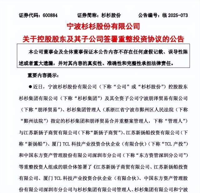 700亿杉杉曝重整“插曲”:原中标投资者变更为TCL产投-互联网那些事