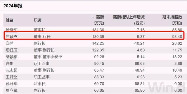 根据年报披露,2024年,庄颖杰税前薪酬为180.4万元,与董事长基本相当,且持有高管中最多的93.4万股。按照最新股价5.3元计算,其持股市值大约是495万元。此外,还有两位高层薪酬也超过百万元,显示了苏农银行对高管的优厚待遇。