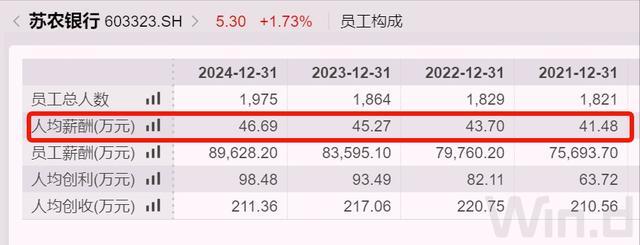 至2024年末,该行职工总数不到2000人,去年人均创利约98.5万元,人均税前薪酬大约46.7万元,比2023年增加约1.5万元,且连续4年上涨。这一薪酬水平与很多实力更强的大行相比也不落下风,显示了苏农银行对员工的优厚待遇和激励机制。