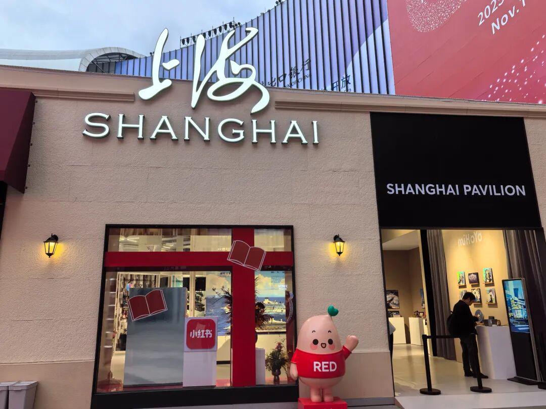 今年进博会,主场馆中央广场的上海馆无疑成为了焦点。300平方米的空间内,一边是外滩风的复古建筑,弧形拱窗搭配精致铁艺,满满老上海韵味;一边则是巨幕屏上的陆家嘴天际线和城市烟火,历史感和现代感直接拉满。