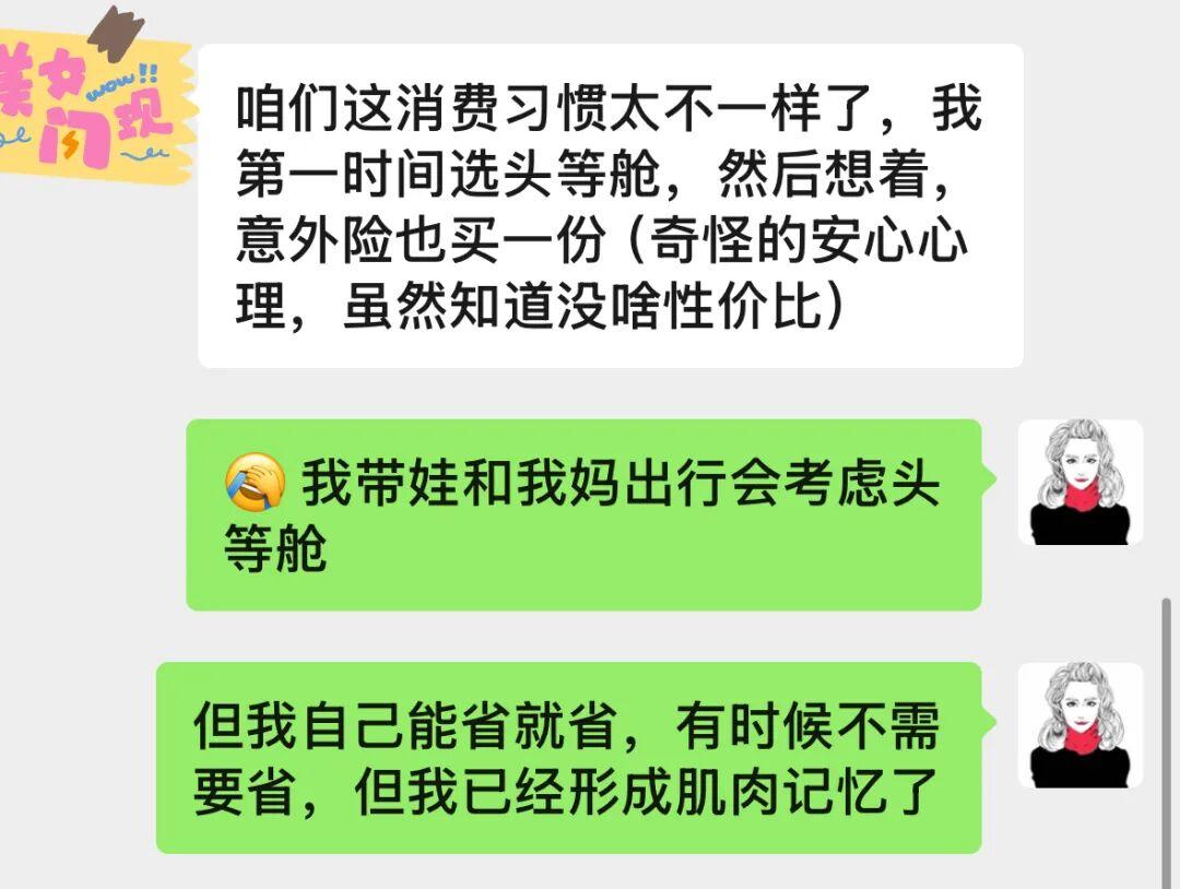 "太省了...我向来都是第一时间买头等舱,甚至会额外购买航空意外险。"