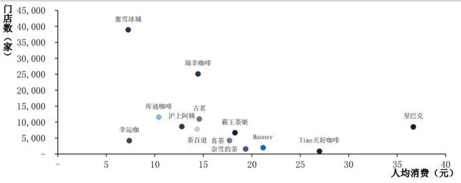 从客单价上看,目前星巴克的人均消费远超国内其他茶饮、咖啡品牌。据弗若斯特沙利文发布的2025年中国餐饮行业发展白皮书,星巴克的人均消费在35-40元之间,而库迪、瑞幸的客单价在10-15元区间,喜茶、奈雪的茶、霸王茶姬等茶饮品牌,人均消费也仅为15-20元。