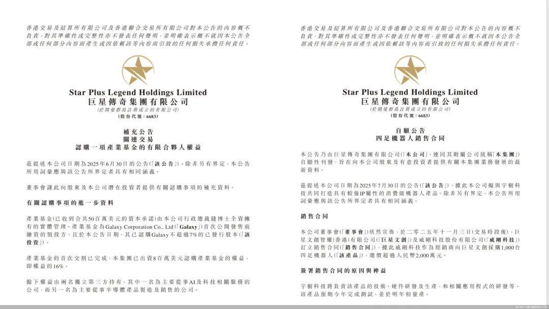 巨星传奇执行董事兼首席财务官赖国辉表示,成为Galaxy战略股东后,公司将通过资本纽带系统性链接多元化、成熟化的国际IP资源池。同时,与宇树科技合作推出“巨星狗”是公司“IP+科技”战略的重要落地,旨在通过智能硬件拓展IP应用场景,增强IP的产业延展与变现能力。