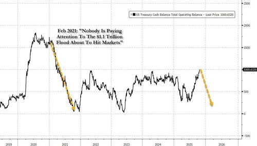 一旦国会达成协议重新开放政府,财政部将迅速动用TGA账户中的巨额现金,向经济和金融体系注入数千亿美元流动性。这一过程类似于2021年初TGA账户余额快速下降时形成的“隐形量化宽松”,当时同样引发市场对流动性泛滥的预期。